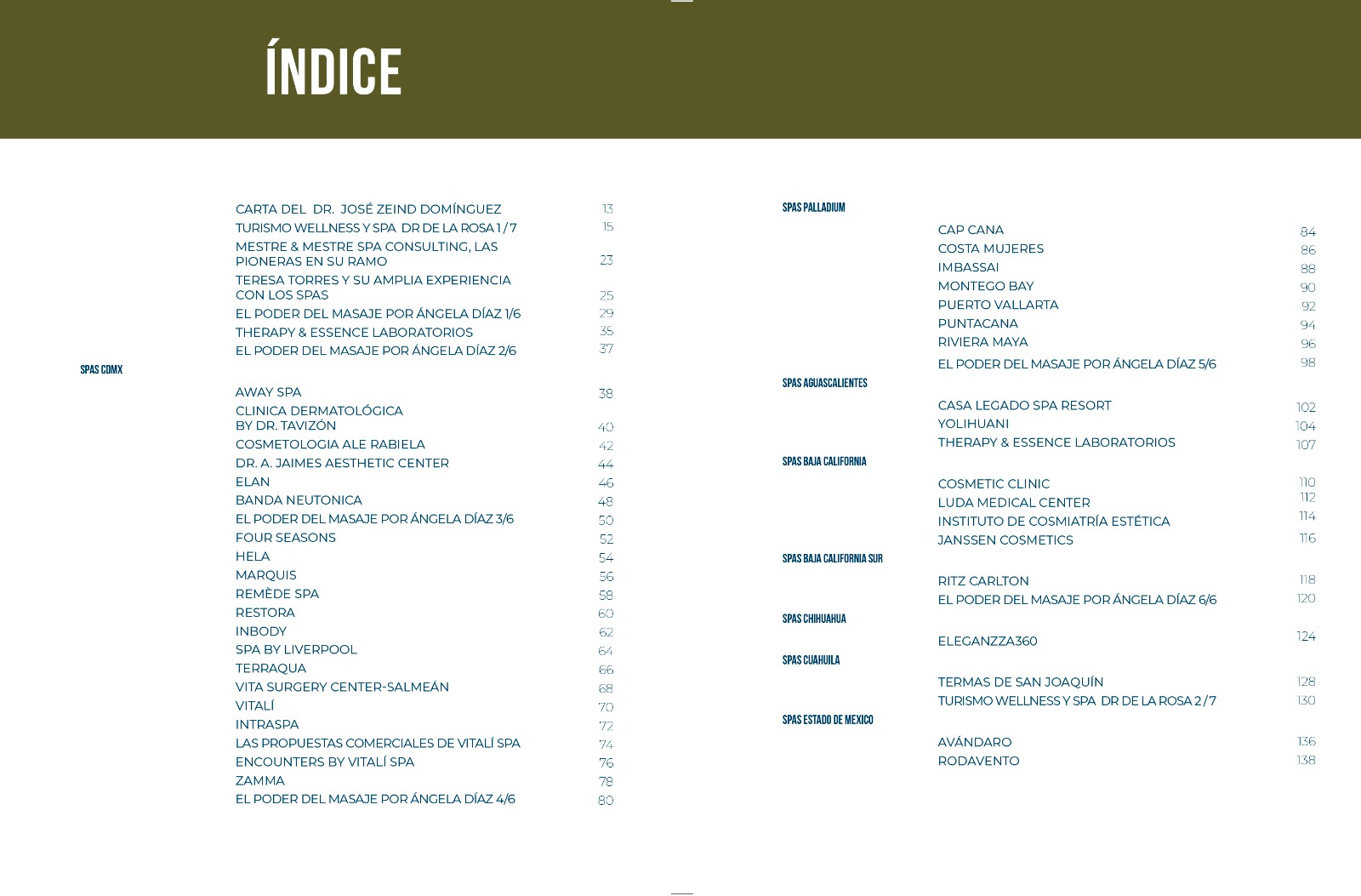Con Palladium en su portada, esta edición ofrece artículos escritos por gente experta en bienestar que pretende informar y sugerir espacios que el lector puede visitar en lugares paradisiacos.