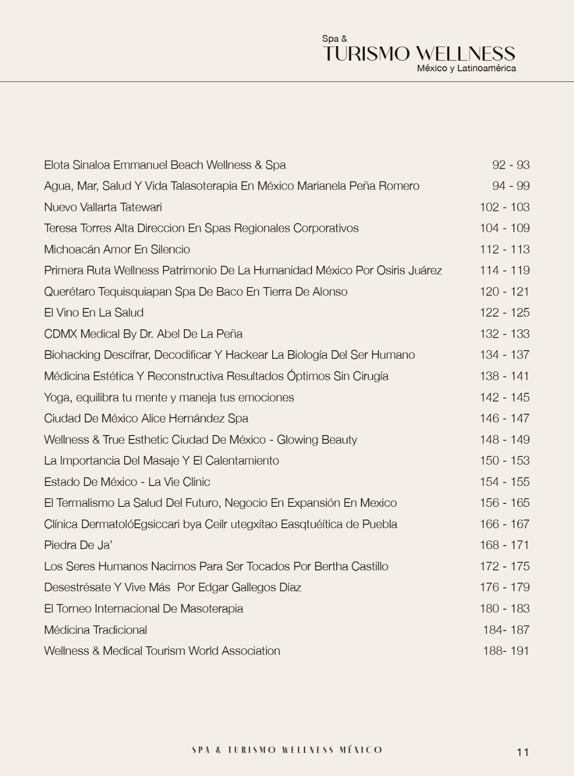 La primera edición del libro Spa & Turismo Wellness fue publicada en octubre de 2023, en colaboración con la Asociación Latinoamericana de Spa. Esta obra marcó un hito para nuestra casa editorial al ser la primera en implementar el uso de códigos QR como herramienta de comunicación y actualización continua con los spas participantes.