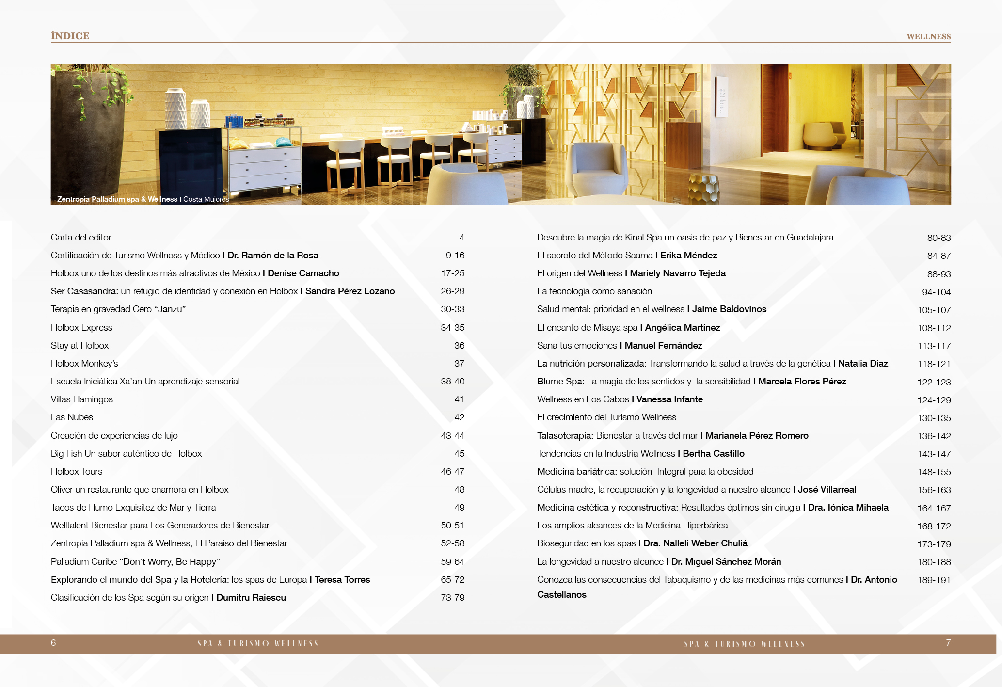 Este libro está en constante evolución, por eso hemos decidido dividir su contenido en dos fascinantes segmentos. El primero te invita a sumergirte en el universo de los spas holísticos, las terapias alternativas, los destinos wellness, el yoga, el ejercicio y la alimentación consciente. El segundo explora el mundo de la medicina estética: spas médicos, cirugías avanzadas, longevidad, tratamientos innovadores y los estudios científicos más recientes.